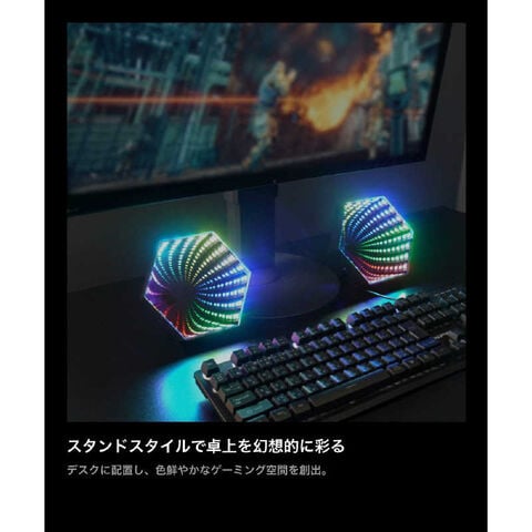●スタンドスタイルで卓上を幻想的に彩るデスクに配置し、色鮮やかなゲーミング空間を創出。