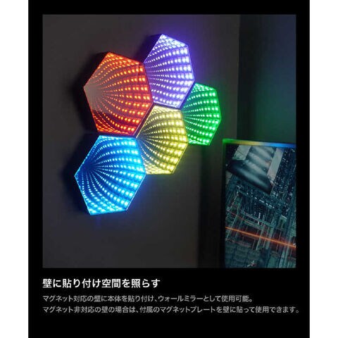 ●壁に貼り付け空間を照らすマグネット対応の壁に本体を貼り付け、ウォールミラーとして使用可能。