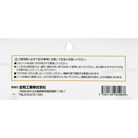 宏和工業 延長コード 12A(1個口・3m) FW096-3 黒