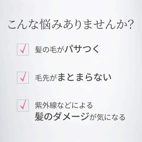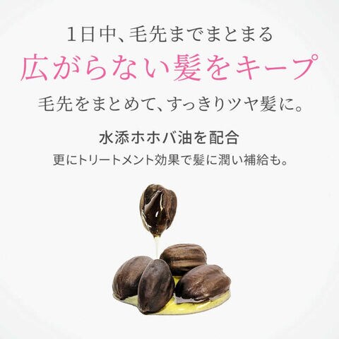 水添ホホバ油が髪に潤いを与え、パサついた毛先をまとめて1日中広がらない髪をキープします。