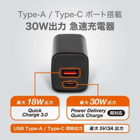 ●PD(高速充電)/QC(急速充電)両対応USB充電器