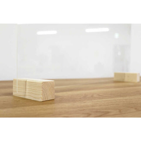 アクリルよりもアルコール耐性が高く、塩ビよりも透明度が高い、しかも軽いGPPS合成樹脂板を使用。 大きめなサイズで木製スタンドの位置も自由に変えられるので幅広く設置可能です。こちらはお得な6枚セットとなります。