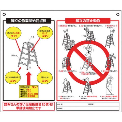 つくし工房 つくし 標識 「脚立の点検項目、禁止動作」 [48J] 48-Jのレビュー