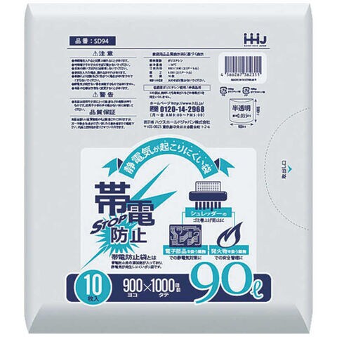 ハウスホールドジャパン ハウスホールド 帯電防止袋90L白10枚0.035 SD94