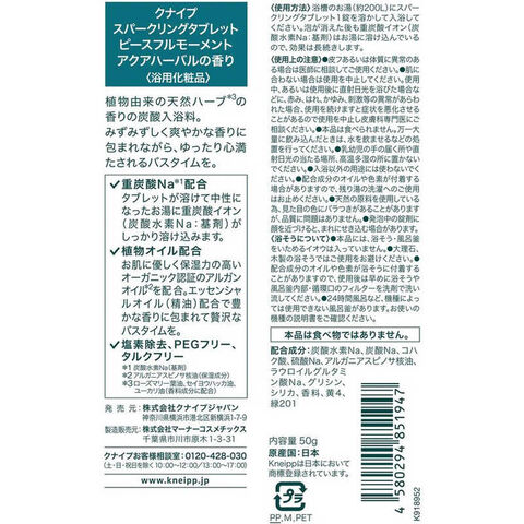 クナイプジャパン クナイプ スパークリングタブレット ピースフルモーメント アクアハーバル 50g