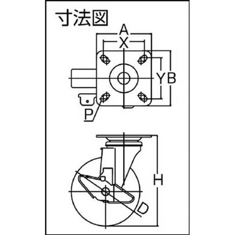 許容荷重(kgf):224.4、車輪径D(mm):200、車輪幅(mm):43、取付高H(mm):250、取付座A×B(mm):140×140、取付ピッチX×Y(mm):105~115×105~115、取付穴径P(mm):11.5、許容荷重(N):2200、車輪径 D(mm):200、取付高 H(mm):250、取付座 A×B(mm):140×140、取付ピッチ X×Y(mm):105~115×105~115、取付穴径 P(mm):11.5、質量(g):3900、許容荷重(daN):220