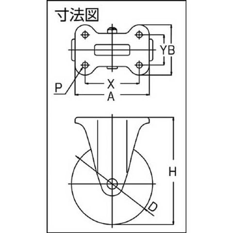 許容荷重(kgf):183.6、車輪径D(mm):130、車輪幅(mm):40、取付高H(mm):177、取付座A×B(mm):137×93、取付ピッチX×Y(mm):100×56、取付穴径P(mm):11、許容荷重(N):1600、車輪径 D(mm):130、取付高 H(mm):177、取付座 A×B(mm):137×93、取付ピッチ X×Y(mm):100×56、取付穴径 P(mm):11、質量(kg):1.55、許容荷重(daN):180