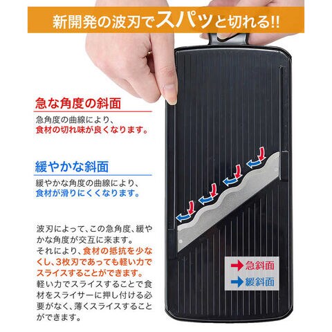 ウェーブ状のスライス刃は、切る時の抵抗も少なく、気持いいほどの切れ味。