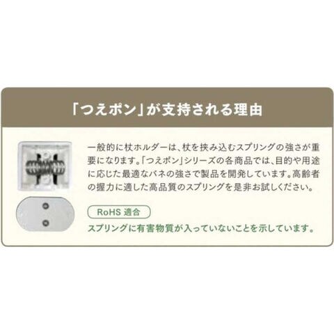独自のホールド技術により、杖をしっかり固定してラクに取り外しができる「つえポン」シリーズの標準型です。