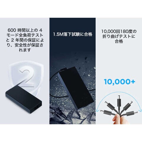 仕様1:[プラグ仕様]F1t:4.5×2.9mmXt:6.0×3.5mmCt:7.4×5.1mmGt:5.5×1.7mmDt:11.0×4.65mm[本体サイズ]約200mm×約100mm×約25.4mm(ケーブルを除く)[重量]約840g[充電ケーブル]1.8m[付属品]変換コネクター×5