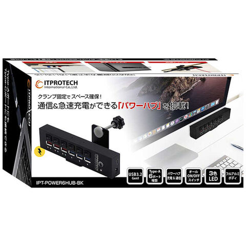 ITPROTECH USB3.2パワーハブBLACK(CLAMP&SWITCH) IPT-POWER6HUB-BK2 アイティプロテック アイティプロテック