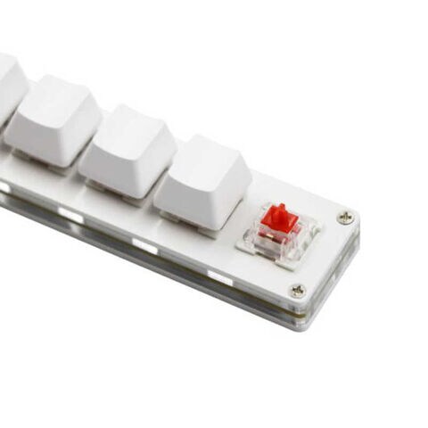 各キーが独立した構造で耐久性に優れています。クリック感がなく滑らかさ・静かさが特長の赤軸メカニカルキースイッチが採用されており、しっかりとした打ち心地となっています。