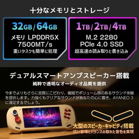AYANEO 3 国内正規版 [7.0型 /Windows11 Home /AMD Ryzen AI 9 /メモリ:64GB /SSD:2TB /英語版キーボード] スカイホワイト AYA3-OL376420-WHR