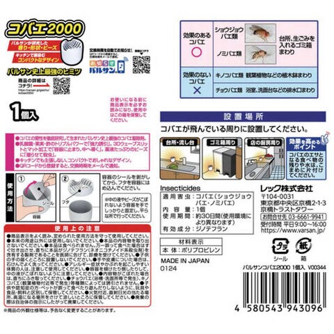 ・適合害虫: コバエ(ショウジョウバエ・ノミバエ)