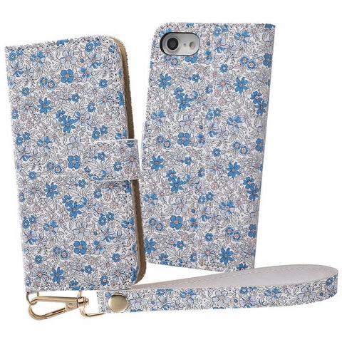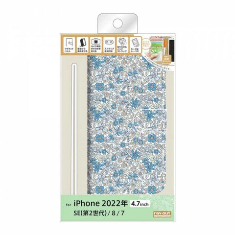 レイアウト iPhone SE 第3世代/第2世代/8/7専用 手帳型 クリアポケット ハンドストラップ ルーペ付 花柄 ブルー RTP34ALCFA2