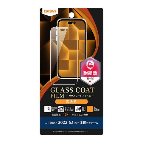 レイアウト iPhone 14 Pro 6.1インチ フィルム 10H ガラスC 衝撃吸収 光沢 RT-P37FT/T12