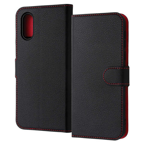 レイアウト BASIO active / シンプルスマホ6 Like standard 耐衝撃 手帳型レザーケース シンプル マグネット/ブラック/レッド RT-BSOAELC1/BR