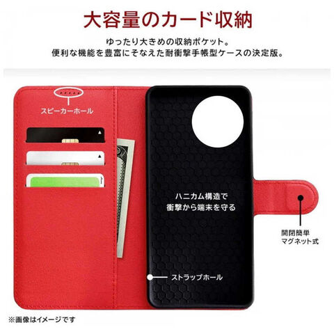 レイアウト AQUOS R9 Like standard 耐衝撃 手帳型レザーケース シンプル マグネット/ブラック/レッド RT-AQFS2ELC1/BR