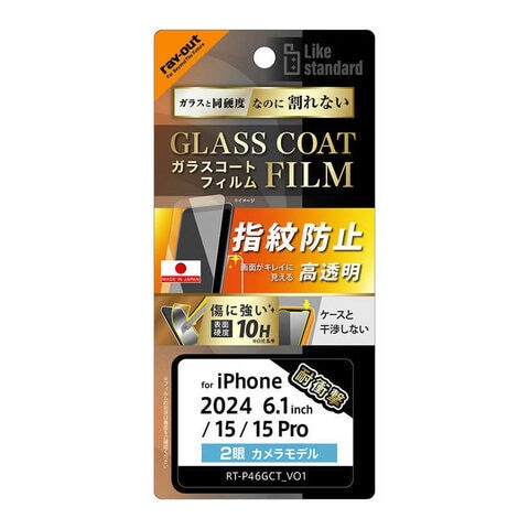 レイアウト iPhone 16/ 15/ 15 Pro Like standard ガラスコートフィルム 光沢 衝撃吸収 平面保護 硬度10H 指紋防止 RTP46FTT12