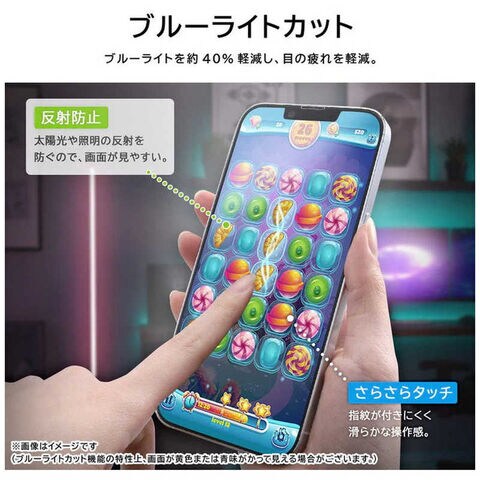 レイアウト iPhone 16e/ 14/ 13/ 13Pro Like standard PETフィルム ブルーライトカット 反射防止 衝撃吸収 抗菌・抗ウイルス 平面保護 指紋防止 RTP50FDK