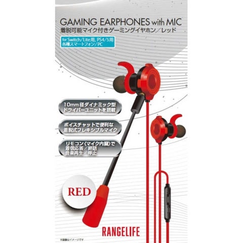 レンジライフ 着脱可能マイク付きゲーミングイヤホン レッド RL-ETC5083