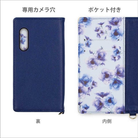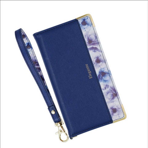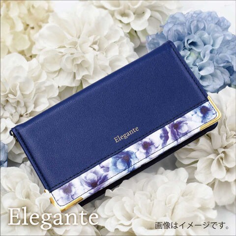 近通 AQUOS sense3対応 手帳型ケース エレガンテ フラワー ネイビー BLAQSE306NV
