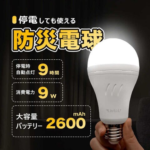 LIVAIA 防災LED電球 単色版(昼白色) バッテリー・停電感知センサー内蔵 停電時点灯時間最大9時間 [E26 / 一般電球形 / 60W相当 / 昼白色 / 1個] FF-01D-W
