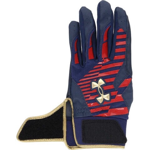アンダーアーマー メンズ UAクリーンアップ プロ バッティンググローブ Midnight Navy/Red/Metallic Gold MD 6001312_25FW