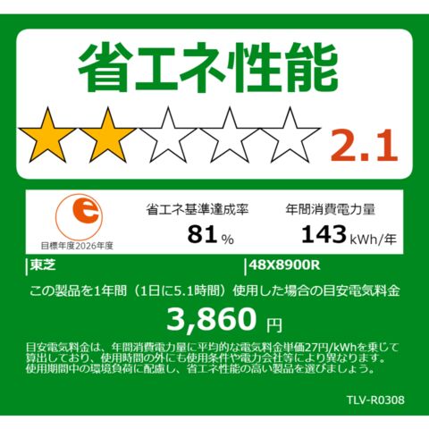 TVS REGZA 有機ELテレビ REGZA レグザ [ 48V型 / Bluetooth対応 / 4Kチューナー内蔵 / YouTube 対応] 48X8900R(標準設置無料)のレビュー