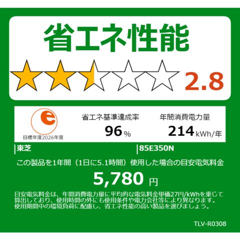 TVS REGZA 液晶テレビ REGZA レグザ E350Nシリーズ [ 85V型 / 4Kチューナー内蔵 / YouTube 対応 ] (要事前見積) 85E350N(標準設置無料)