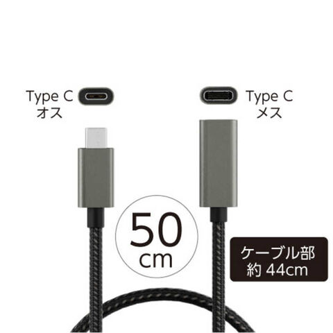 AREA USB-C延長ケーブル 50cm 池尻2丁目 [Type-C延長ケーブル /USB Power Delivery対応] ブラック AR-CCEX440