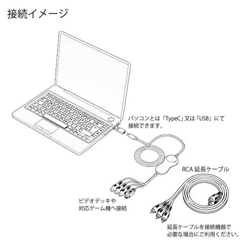 仕様2:[ケーブル長]約94cm[延長ケーブル]RCAオス-オスケーブル 100cm[解像度]720×480[フレームレート]約30fps[記録フォーマット]Mpeg2形式[付属品]USB-C変換アダプタ、RCA延長ケーブル(100cm)[付属ソフトライセンス]VHS to DVD 5.0 無期限ライセンス(シリアル番号は説明書に記載)