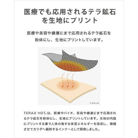 遠赤外線を放射する鉱物を生地肌面にプリント。