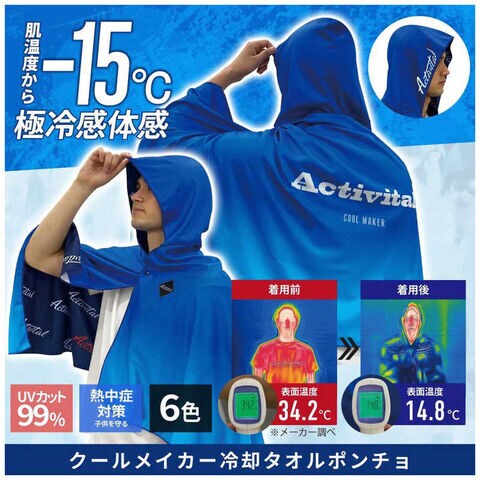 水に濡らして絞って振るだけで-15度の冷感を作り出すポンチョタオル。