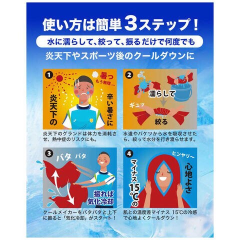水に濡らして絞って振るだけで-15度の冷感を作り出すポンチョタオル。
