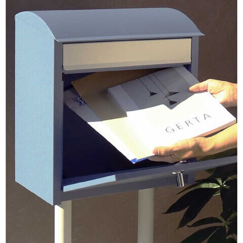 カラーは上品な色合いのワインレッドとくすんだブルーのラベンダーブルーで、脚と台座部、郵便投函口はホワイトになります。