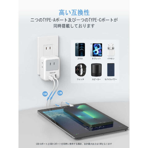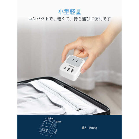 3個のAC差込口、2個のtype-Aポートと1個のtype-Cポートを搭載しているUSB コンセント タップです。