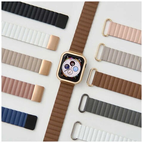 GAACAL Apple Watch Series 3-8/SE1-2/Ultra 42/44/45/49mm マグネット式PUレザーバンド ホワイト×ローズゴールド W00186WRB