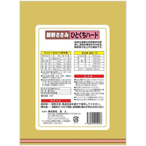友人 新鮮ささみ 無添加ひとくちハード 200g