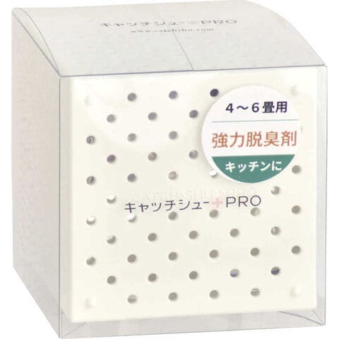 ニオイナシ、という、オモテナシ。キャッチシューPROは、多くの医療現場で使われていた実績を元に、よりコンパクト、より洗練された脱臭剤を目指し誕生した本格脱臭プロダクトです。化学物質を一切含まないため、食品がある場所で使っても安心・安全。臭いを強力にキャッチ。本品は150gの大容量。キッチンで十分に効果を発揮します。