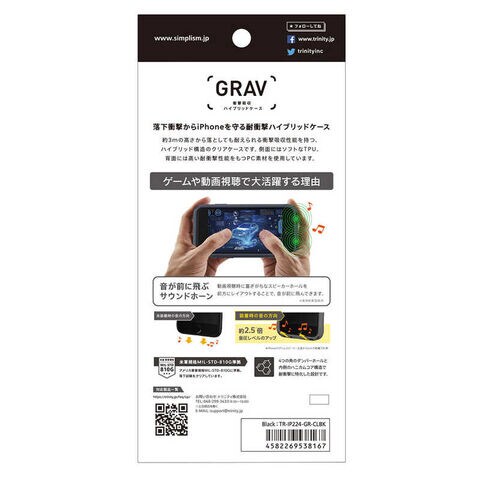 トリニティ iPhone SE 第3世代/第2世代/8/7専用 [GRAV] 衝撃吸収 ハイブリッドケース ブラック TR-IP224-GR-CLBK