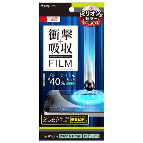 トリニティ iPhone 14/ 16e/ 13/ 13Pro 6.1インチ 衝撃吸収&ブルーライト低減 画面保護フィルム 光沢 TRIP22M2PFSKBCCC