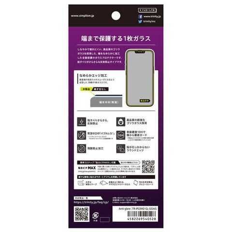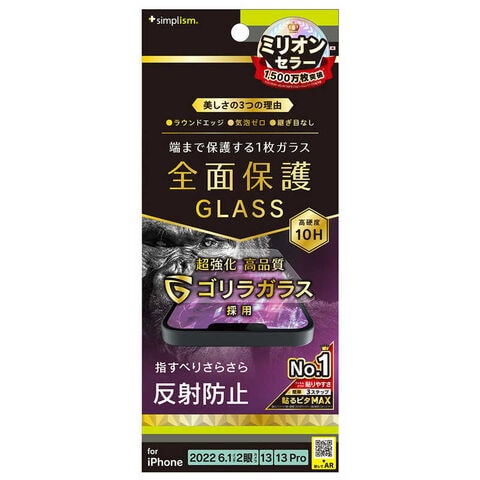 トリニティ iPhone 14 6.1インチ フルカバー 画面保護 ゴリラガラス 反射防止 [TRIP22M2GLGOAG] TR-IP22M2-GL-GOAG