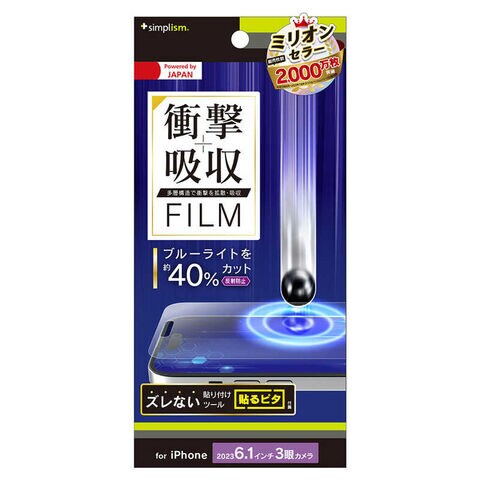 トリニティ iPhone15 Pro 6.1インチ 衝撃吸収&ブルーライト低減 画面保護フィルム 反射防止 TR-IP23M3-PF-SKBCAG