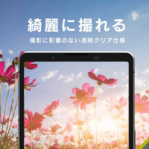 ・高透明で撮影に影響なし・気泡ゼロの「バブルレス」仕様・防指紋加工で清潔を保つ・フラッシュ対応・皮脂がよく落ちる、マイクロファイバークロス付属