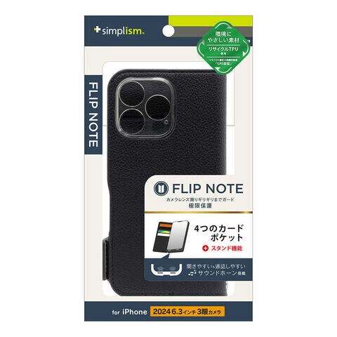 トリニティ iPhone 16 Pro(6.3インチ) [FlipNote] 耐衝撃フリップノートケース ブラック TR-IP24M3-FN-SHBK