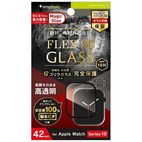 トリニティ 2024年Apple Watch 42mm [FLEX3D]ゴリラガラス 高透明 全画面保護強化ガラス ブラック TRAW2443GH3FGOCBK
