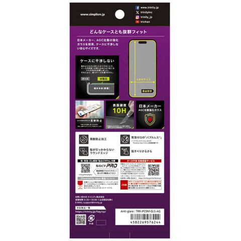 トリニティ iPhone 15/ 15 Pro/ 14 Pro ケースとの相性抜群 反射防止 画面保護強化ガラス TRR-IP23M-GLS-AG