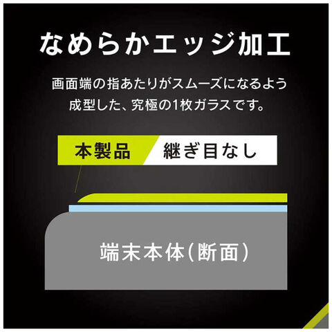 仕様1:絶対、角割れしない。強化ガラスとPETフレームの複合構造端まで守る、フルカバーフレームタイプAGC社製の強化ガラス採用気泡ゼロの「バブルレス(R)」仕様表面硬度10Hで傷から徹底ガード万が一の破損にも安心、飛散防止加工
