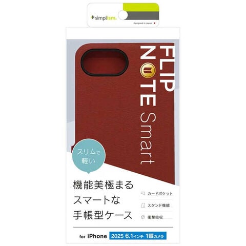 トリニティ iPhone 16e [Smart FlipNote] 薄型スマートフリップノートケース レッド TR-IP25S-FNS-LRD